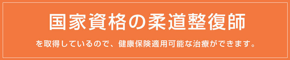 当院では、国家資格を取得している柔道整復師が施術しておりますので、健康保険適用治療が可能となっています。
